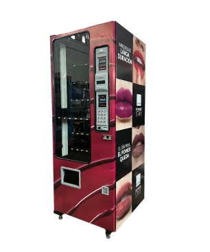 Máquina versátil con amplio espacio de exhibición. Perfecta para variedad de productos de maquillaje.